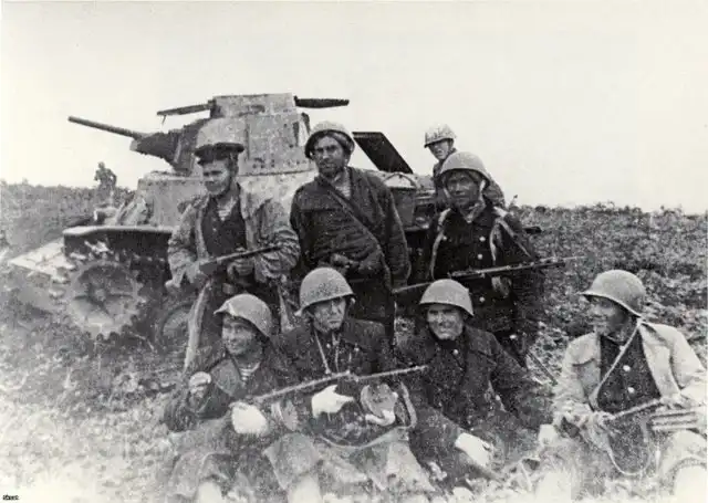 Примерно в 14:00 по камчатскому времени японцы пошли в атаку 18 танками. Почти все они остались на нашей линии обороны, выбитые сосредоточенным огнём ПТР. Выйти из боя смог только один японский танк.