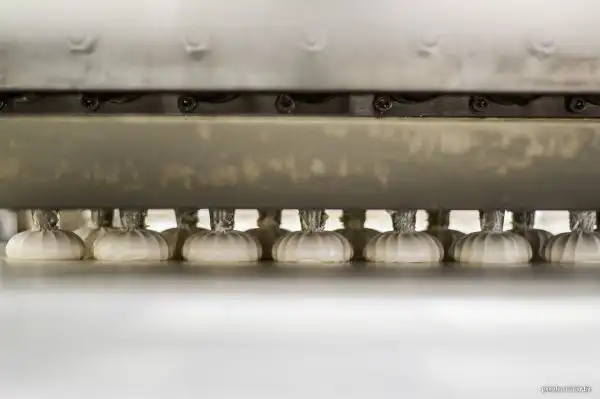 На этой линии процесс полностью автоматизирован. Патока, сахарный сироп, яблочное пюре и пектин подаются в специальную емкость. В ней сырье взбивает специальный аэратор, после чего оно поступает на осадочную головку, а затем зефир «высаживается» на транспортерную ленту.