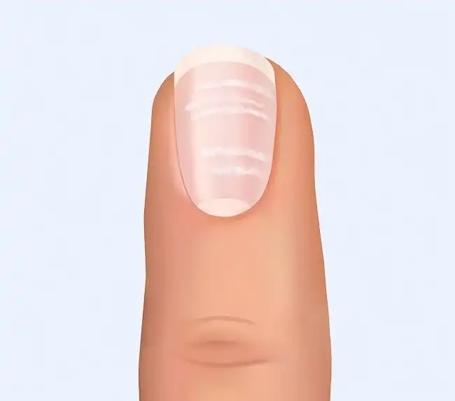Вертикальные бороздки на ногтях — признак травмирования кутикулы или основания ногтя (например, при маникюре), а также недостатка витамина B12, цинка и магния.