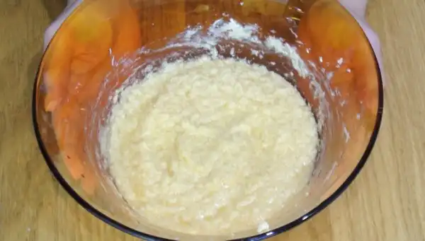 После чего добавить все сыпучие ингредиенты и хорошенько вымешать тесто.