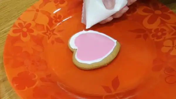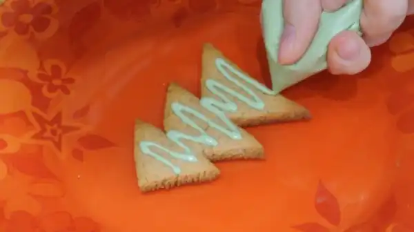 Перекладываем готовую глазурь в кондитерский мешок и приступаем к украшению имбирного печенья.