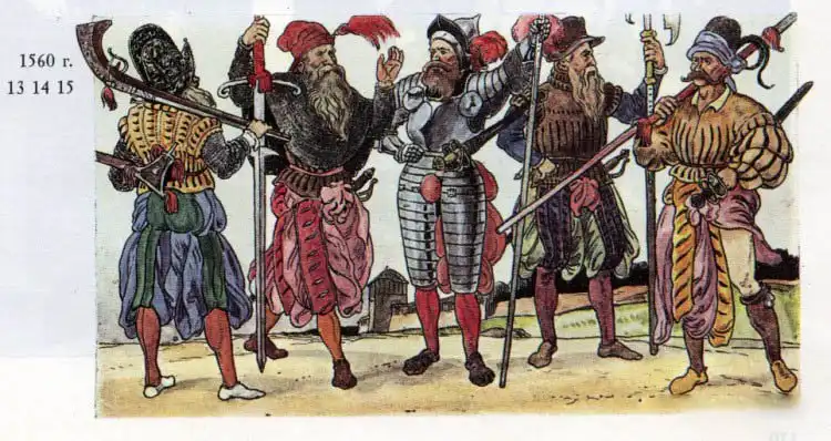Кстати, одежда ландскнехтов, кажущаяся в наше время просто-таки попугайной, имела не только практическое, но и символическое значение. В XVI веке она тоже смотрелась вызывающе, однако её смысл состоял в том, чтобы демонстративно попирать законы того времени, воспрещавшие простолюдинам ношение слишком яркой или дорогой одежды. Плюмажи, безумных размеров рукава, шёлк, серебро, ленты — всё это не имело никакого практического значения, но подчёркивало свободу владельца от общепринятых законов. Так что пёстрые костюмы наёмников демонстрировали не отсутствие вкуса, а целенаправленный вызов иерархии. Особняком стояли артиллеристы: эти не хотели становиться мишенью для вражеских стрелков, поэтому носили обычно простую одежду неброских цветов.