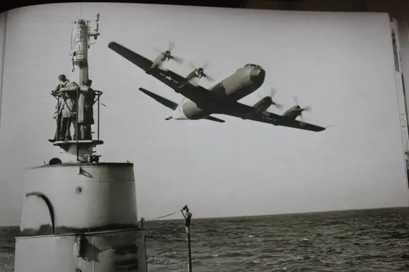 Фото: Самолет ВМФ США "Мартин РSМ-2 Мерлин" над всплывшей ПЛ Б-36