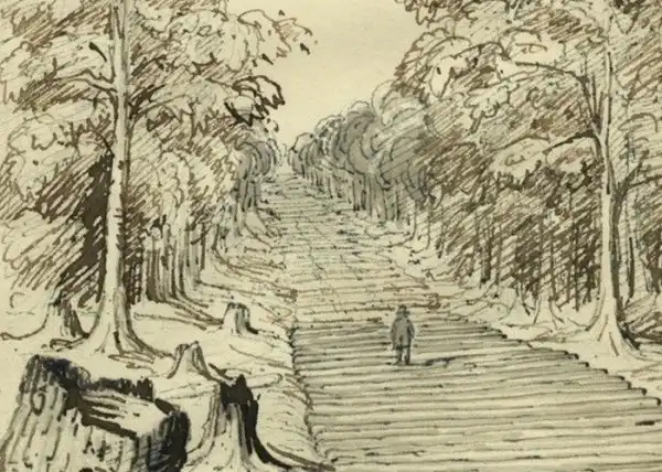 Под Кинг-стрит в канадском Уотерлу обнаружилась гораздо более старая версия дороги. Историческая находка была сделана в 2016 году строительной бригадой, которая наткнулась на что-то, похожее на ряд бревен. Когда это случилось, они вызвали археологов, которые установили, что это бревенчатая дорога, датируемая временами начала строительства города Уотерлу. Бревенчатая гать была построена до 1877 года путем укладки бревен поперек пути, чтобы облегчить прохождение через болота. При постройке подобной дороги поселенцы использовали песок и плотно подогнанных друг к другу стволы деревьев.