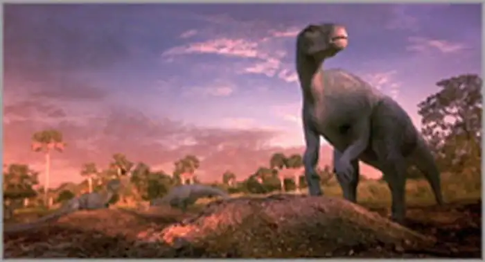 Этот мультфильм принципиально отличался от всего, что было снято до сих пор. Действие разворачивалось в доисторическом мире, и персонажи — ящеры, первые птицы, млекопитающие и другие представители той эпохи — были визуализированны максимально реалистично и достоверно, в традициях игровых, а не анимационных лент. При этом в качестве большей части декораций выступали реальные, невероятно красивые, ландшафты, снятые на пленку в самых экзотических уголках Земли. Больше всего это напоминало игровой фильм «Парк юрского периода», но в отличие от «Парка», в котором динозавры были лишь частью аттракциона, новая картина вся была одним большим, но невероятным, захватывающим дух, спецэффектом, причём не стилизованным под документальное кино, а воистину являвшимся настоящим художественным фильмом. Ведь виртуальные, но почти настоящие, животные «Динозавра» были наделены разумом в лучших традициях классических мультфильмов. Таким образом, диснеевский компьютерный эпос практически стёр границу между игровым и мультипликационным кино, из первого взяв фотореализм, а из последнего художественные приёмы аллегории, олицетворения, метафоры, сказочности.