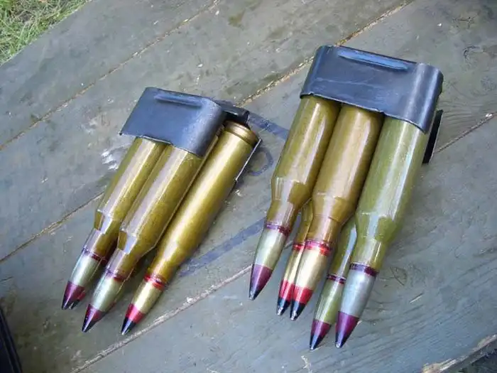 Дело в том, что в отличие от ПТРД, ПТРС имело пачечное заряжание. При заряжании затвор отводился назад, крышка магазинной коробки открывалась, и снизу вставлялась пачка с пятью патронами. ПТРС было самозарядным, и пять выстрелов можно было произвести подряд.