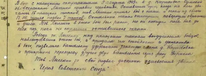 9 августа 1943 года бронебойщик старший сержант Лысенко вступил в единоборство с пятнадцатью немецкими танками и вышел из него победителем.