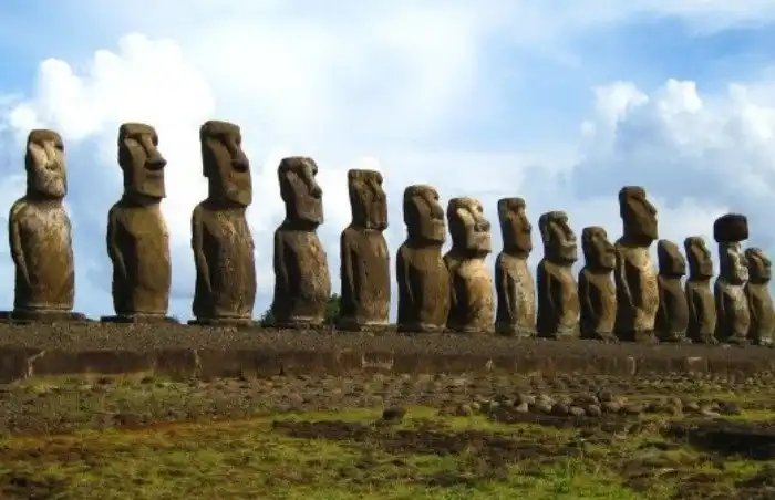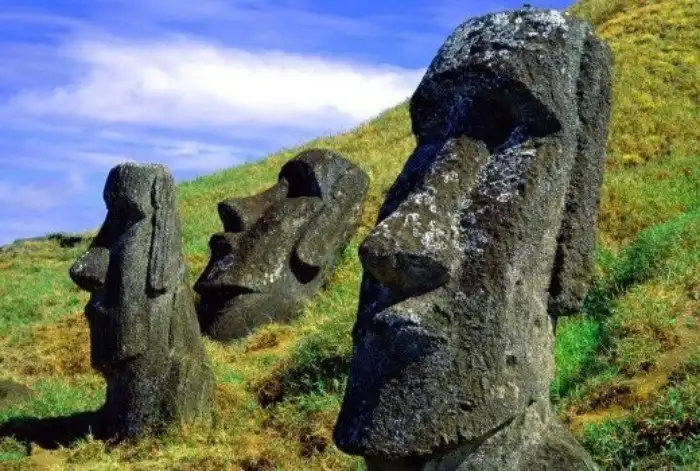 Остров насчитывает около 9 сотен статуй. Загадочные каменные идолы вытачивались из скальных пород Рапа-Нуи. Самый крупный моаи составляет 21 метр в высоту и весит более 15 тонн.