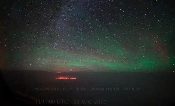 Сообщение об аномальном явлении выложил в интернет (сайт pbase.com) пилот голландского Боинга 747, следовавшего 24 августа 2014 года из Гонконга в Анкоридж на Аляске. Пилот назвался JPC van Heijst.