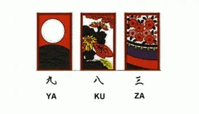 Термин «якудза» произошёл от группировок карточных игроков бакуто, названных так по одной из комбинаций игры ойтё-кабу. «Я» в переводе с японского означало «восемь», «ку» — «девять», «дза» — видоизменённое «сан», то есть «три»; в сумме — двадцать, или самое плохое число в этой японской карточной игре (ещё эта комбинация известна как «свинья»).