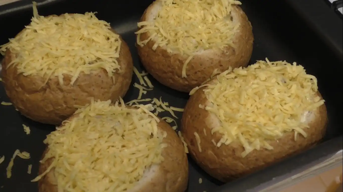10. Готовый жульен разложите в булочки, которые уже успели подрумяниться в духовке.