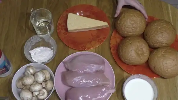 Для приготовления классического жульена в булочке, вам понадобятся следующие продукты:
