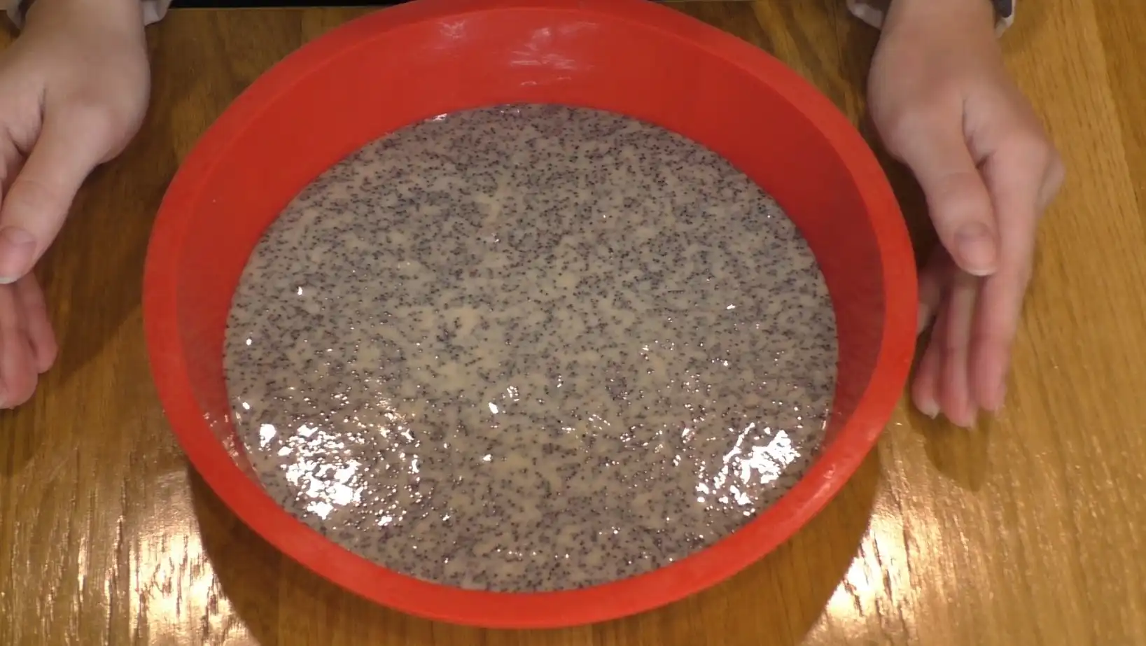 Теперь время добавлять в тесто различные наполнители. Для первого коржа добавьте 50 грамм мака и все хорошо перемешайте.