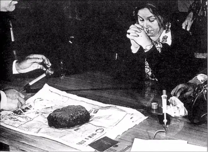 Петерсон доставили на Лубянку и вызвали советника американского посольства для опознания. В его присутствии вскрыли контейнер, закамуфлированный под булыжник. Там обнаружили инструкции, вопросник, специальную фотоаппаратуру, золото, деньги и две ампулы с ядом.
