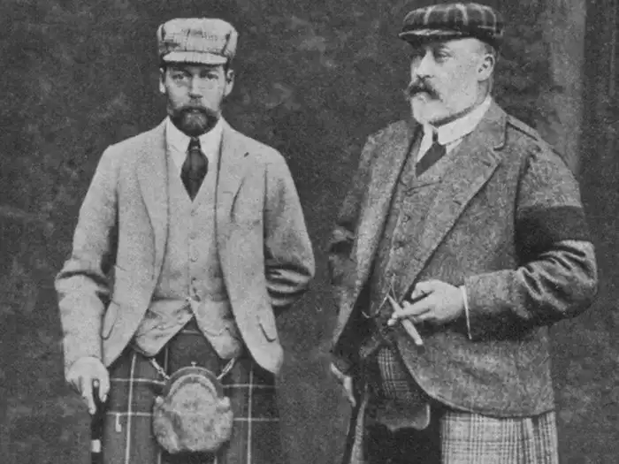 Когда пиджачная пара получила широкое распространение в качестве повседневной одежды, Эдуард VII продолжал оставлять нижнюю пуговицу расстёгнутой в память о сюртуках для верховой езды. Ну а его жилеты расстёгнуты снизу, потому что Эдуард был весьма полным.