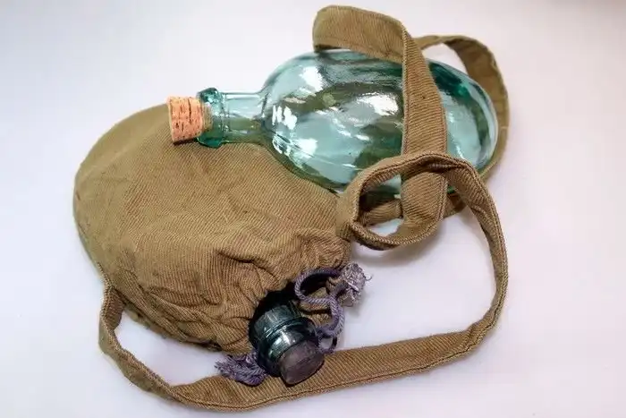 Стеклянная фляга. Фляги из стекла широко использовались во многих армиях мира. Не была исключением и Русская императорская армия, от которой такой тип фляг достался «по наследству» Красной Армии. Несмотря на то, что параллельно производившиеся фляги из жести или алюминия были более практичны, дешёвые стеклянные ёмкости были хороши для массовой призывной армии.
