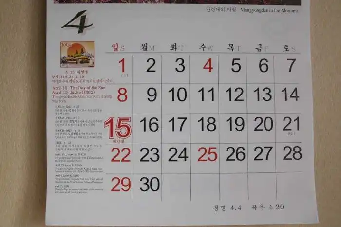 В КНДР были те же календари, что и у нас, вплоть до введения нового летоисчисления в 1997 году. Вот уже 10 лет в стране пользуются календарем чучхе, за точку отсчета в котором берется год рождения Ким Ир Сена в 1912 году.
