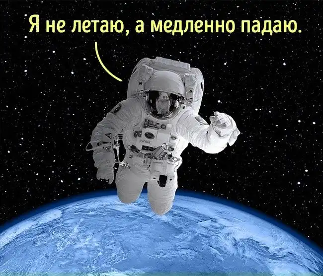 Гравитация на МКС есть, но она чуть слабее, чем на поверхности планеты. По сути, космонавты вместе со своим кораблем очень медленно падают вперед со скоростью 7,9 км/с, от чего и появляется невесомость.