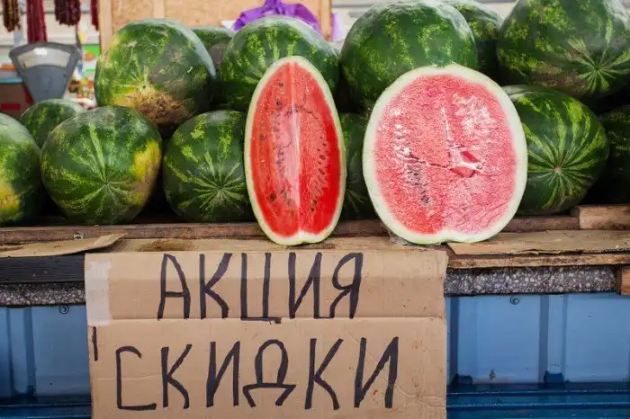 Правильные торговые точки должны иметь навесной тент и специальные настилы (не ниже 15 см над поверхностью земли). Дело в том, что в корке арбуза много микротрещин, через которые в мякоть может попасть пыль, грязь и микробы. Сладкая сердцевина – это рай для размножения различных болезнетворных микроорганизмов.