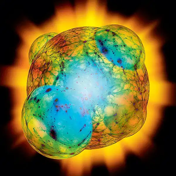 Ложный вакуум.По современным представлениям, пустое пространство (вакуум) может находиться в разных энергетических состояниях. Наше привычное пространство, по-видимому, является самым низкоэнергетическим состоянием вакуума. Однако до Большого взрыва вакуум мог находиться в намного более энергичном состоянии, которое называют ложным вакуумом. Согласно теории космологической инфляции, это состояние является неустойчивым. Именно распад ложного вакуума мог стать источником энергии Большого взрыва.