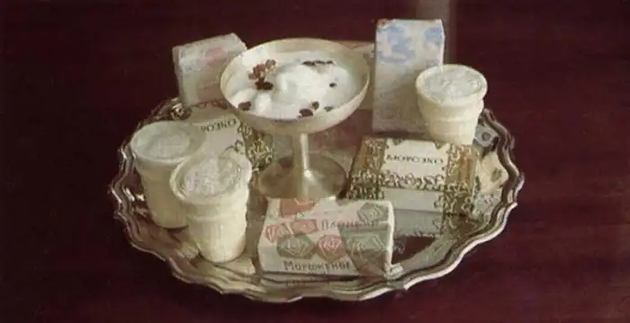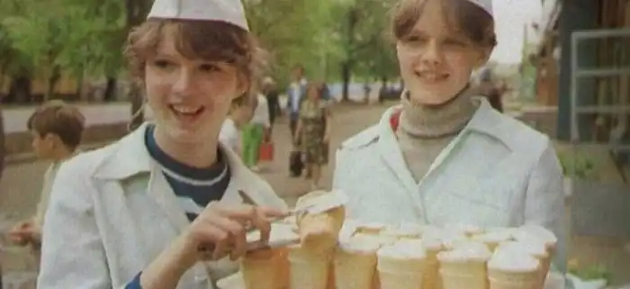 Стойко вынести операцию по удалению миндалин советский ребенок мог только тогда, когда узнавал, что весь послеоперационный период его будут кормить мороженым за государственный счет. Скорее всего, самым любимым – пломбиром. Но ведь и родителям можно было, пользуясь случаем, заказать мороженое, какое-нибудь необычное и редкое. Выбор часто падал на то, в котором совмещались гастрономические грезы всех советских детей – мороженое и пирожное в одной упаковке. Сливочное мороженое в вафельном стаканчике, украшенное бледной розочкой из крема, стоило 19 копеек. Его и сегодня можно найти в магазинах, при этом внешний вид и так любимая в детстве розочка не претерпели, кажется, существенных изменений. Легендарным мороженым стало мороженое из Главного универсального магазина. В вафельном стаканчике – крем-брюле, шоколадное, сливочное – первое, с чем у нескольких поколений ассоциируется ГУМ. Его до сих пор производят в самом ГУМЕ, при этом секрет его вкуса хранится в глубокой тайне. В производственный цех не пускают не только посторонних – журналистов и любопытных, но даже сотрудников магазина. Мороженое, ставшее со временем культовым, начали продавать в главном универсальном магазине 3 июля 1954 года. Всего гумовского мороженого существует девять видов. Наибольшей популярностью до сих пор пользуется пломбир.