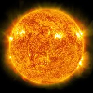 Энергия нашего светила вырабатывается в термоядерных реакциях превращения водорода в гелий. Четыре ядра водорода весят на 0,7% больше, чем ядро гелия, которое из них образуется. Эта небольшая разница, называемая дефектом массы, переходит в энергию. Часть ее сразу уносят в космос всепроникающие нейтрино. Остальная энергия превращается в тепло и разогревает недра Солнца до 14 миллионов градусов. Огромная температура удерживает давление вышележащих слоев вещества и обеспечивает протекание термоядерных реакций.