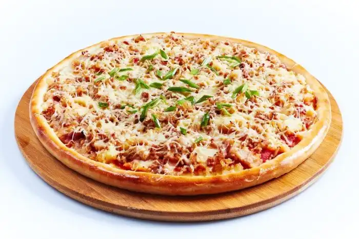 Инструкция: Филе курицы нарежьте вдоль на ломтики толщиной около 2 см, слегка отбейте, посолите, поперчите. На смазанный маслом противень выложите основу для пиццы, смажьте ее томатным соусом, затем разложите кусочки курицы, смажьте их майонезом, сверху уложите кусочки ананаса, затем посыпьте тертым сыром. Запекайте в духовке при 200 °С 20-30 минут.