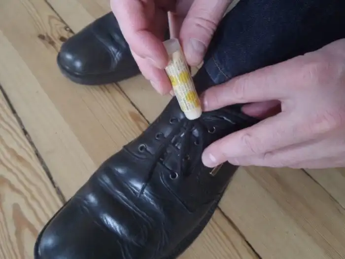 Бывает, что со шнурками дело не ладится: то они развязываются в самый неподходящий момент, то, наоборот, узел никак не развязать... Чтобы решить эти проблемы одним махом, завязав шнурки, смажьте узел гигиенической помадой, а затем затяните его покрепче. Узел продержится, сколько надо, и развяжется без проблем.