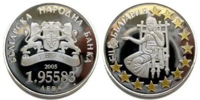 В 1999 году Болгария приравняла свою денежную единицу лев к немецкой марке. Через несколько лет марки были заменены на евро по курсу 1,95583 марки = 1 евро, и в таком же соотношении лев стал привязан к евро. Когда в 2005 году был подписан договор о вступлении страны в Евросоюз, Болгарский национальный банк выпустил памятную монету уникальным номиналом 1,95583 лева как символ стремления Болгарии тоже перейти на евро в будущем.