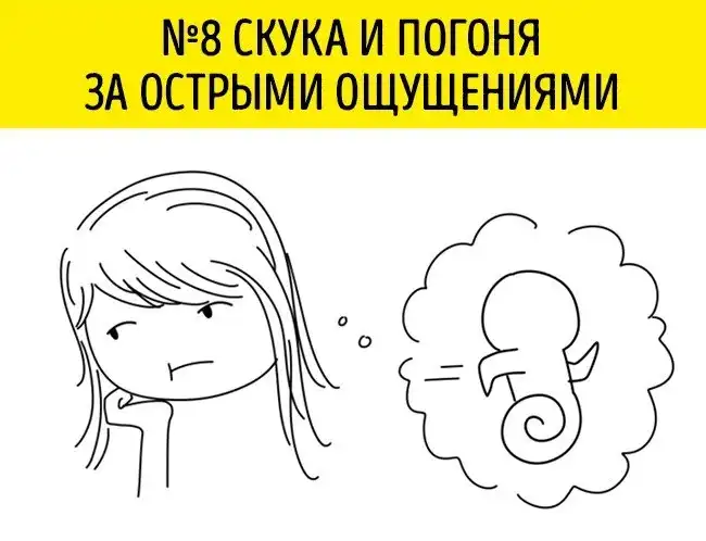 Психопаты постоянно нуждаются в острых ощущениях. Им скучно. В погоне за дозой адреналина они способны даже обидеть кого-то и совершить иной резкий поступок. Их привлекают стрессовые ситуации. Лучший вариант для них — переключение на всевозможный экстрим.