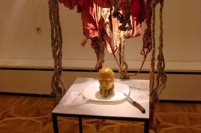 Призрак Ленина все еще бродит по миру и не дает нам покоя, даже памятники его вызывают страх и уничтожаются. Вот и маленький бюст вождя напугал искусствоведов. 1 ноября в Витебске в центре современного искусства установили бюстик Ленина из холодца. В центре инсталляции "12 ножей в спину революции" желатиновый Ильич со свининой и морковкой, голову ему подпирает соленый огурчик. Сегодня его уже убрали, хотя выставка продлится до середины декабря. Автор композиции говорит, что иронии не поняли и чего-то испугались.
