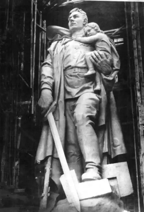 Трептов-парк, где решено было строить мемориальный комплекс, занимал второе по величине место в Берлине и был свидетелем многих исторических событий. После войны на его территории захоронили более семи тысяч советских солдат. Поэтому выбор пал именно на это место. Для работы над мемориалом мобилизовали 60 немецких скульпторов, 200 мастеров-каменотёсов, 1200 рядовых рабочих из Германии.