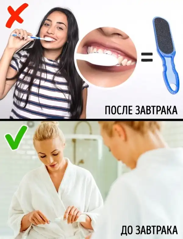 3. Не чистите зубы в течение часа после приема еды