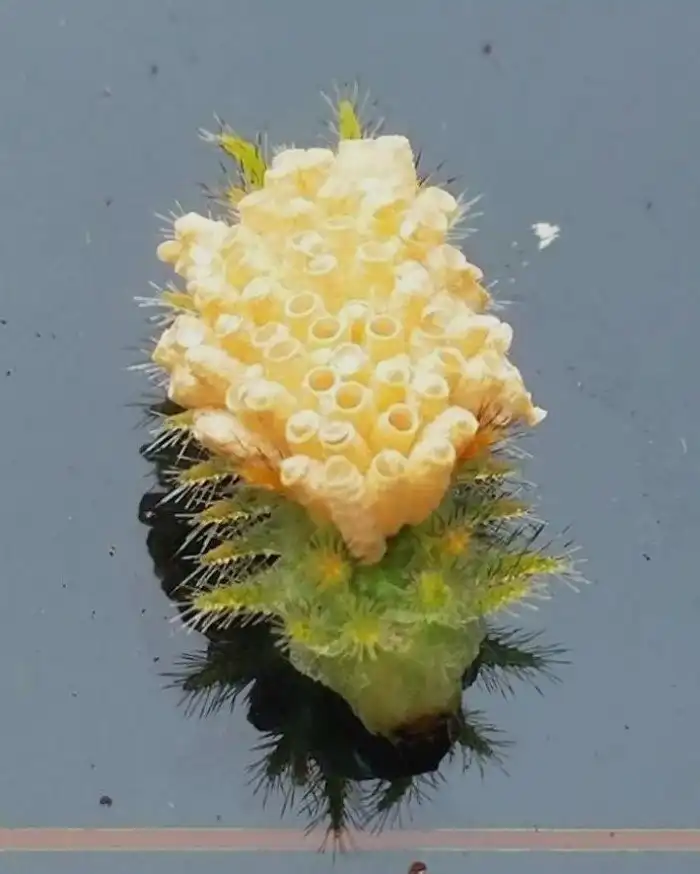 "Это гусеница Spiny Oak-Slug, покрытая яйцами паразитического насекомого - бракониды".