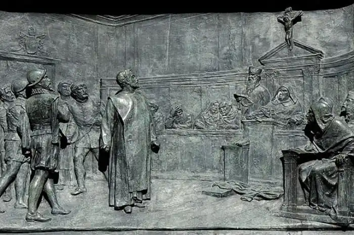 Разбирательство инквизиции по делу Бруно длилось 8 лет, в течение которых его пытались убедить в том, что его еретические утверждения полны противоречий. Однако монах не отказался от своих взглядов, и тогда инквизиционный трибунал объявил его «нераскаявшимся упорным и непреклонным еретиком». Бруно лишили сана, отлучили от церкви и передали в руки светских властей. В его обвинительном приговоре о гелиоцентрической системе речи не шло – ему вменялось в вину отрицание догматов христианства. В те времена идеи Коперника хоть и не поддерживались церковью, но их сторонников не преследовали и на кострах не сжигали. Но Бруно, по сути, создал новое религиозно-философское учение, которое грозило подорвать основы христианства, так как отрицало всемогущество Бога. Поэтому его покарали как еретика, а не как ученого.