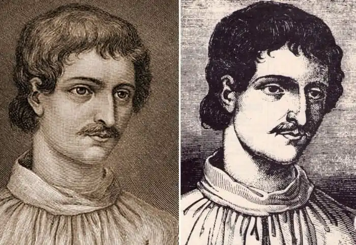Во-первых, Бруно вряд ли можно было назвать молодым. На сохранившейся гравюре XIХ в. Ноланец (по месту рождения – итальянский город Нола) действительно выглядит молодо, однако на момент казни ему было 52 года, что по тем временам считалось весьма преклонным возрастом. Во-вторых, едва ли его можно называть ученым. Джордано Бруно был странствующим доминиканским монахом и философом, исходил всю Европу, преподавал во многих университетах (откуда его нередко со скандалом изгоняли за еретические суждения), защитил две диссертации.