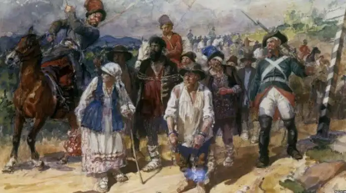 Российская империя была построена на спинах крепостных, связанных конкретным местом и вынужденных работать на контролирующего территорию помещика. К XVII веку землевладельцам было разрешено покупать и продавать крепостных, что переводило последних в разряд самых настоящих рабов. Технически, дворянам не было позволено убивать своих крестьян, но выбор наказания за проступок оставался на совести хозяина. Кончина холопа от травм при наказании не влекла никаких последствий. Крепостничество отменили только в 1861 году: этому моменту Россия имела население почти 63 млн — по меньшей мере, 46 млн были крепостными.