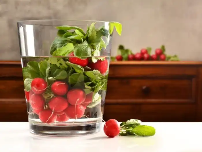 Когда редис, сельдерей или морковь перестают хрустеть, опустите их в емкость с ледяной водой вместе с куском сырой картошки и смотрите, как овощи свежеют прямо у вас на глазах.