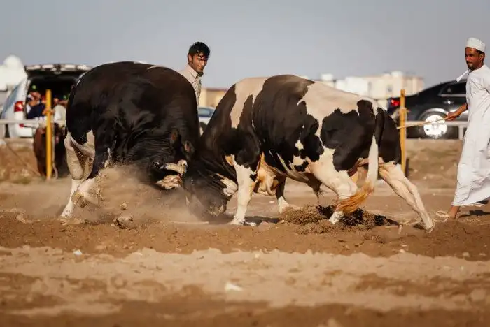 Недалеко от столицы Омана, города Маската, еженедельно проводятся бои быков. Животных здесь специально для этого разводят, и стоят они зачастую как автомобиль. Никаких ставок или входных билетов на бои не предусмотрено — это дело престижа: породы и самого заводчика.