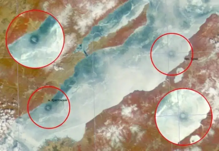 Кольца, диаметр которых достигает нескольких километров, образовывались на льду Байкала в 2003, 2005, 2008 и 2009 годах. Увидеть их можно только из космоса. Скорее всего, в их появлении виноваты выбросы метана, но это не точно.