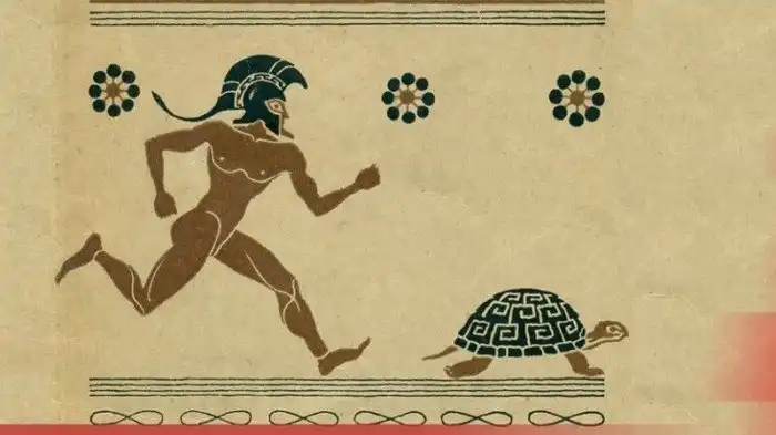 Ещё одна из апорий Зенона, основана на том утверждении, что Быстроногий Ахиллес никогда не догонит медленную черепаху, если в начале движения черепаха находится впереди. Звучит она так: