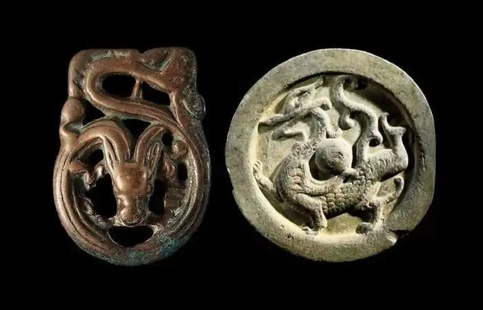 В 1970-х годах Сергей Фефелов вспахивал свое поле в Хакасии, когда внезапно трактор выкорчевал на поверхность что-то металлическое. Оказалось, что это 8 пряжек в виде драконов. Возраст артефактов составлял почти 2000 лет и они очень четко изображали змеевидных зверей.