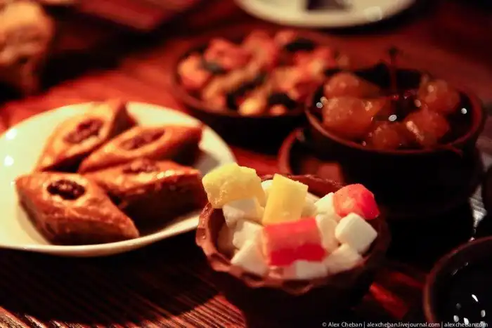 Сегодня я немного раскрою тему национальной кухни, зато начну с самого сладкого :) Культ чая и сладостей в Азербайджане, невероятное количество видов варенья и самое главное – эксклюзивные секреты производства Шекинской халвы.