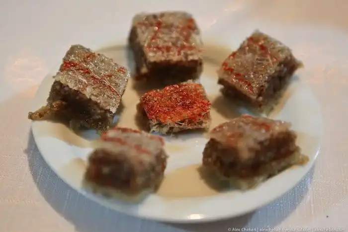 Вот это блюдо абсолютно поменяло мои представления о халве, на ней я остановлюсь поподробнее. Это абсолютно другое блюдо, отличное от серой массы из отходов семечек, которое продается у нас… В первый же вечер я отметил шекинскую халву, самую лучшую и особенную халву в Азербайджане.