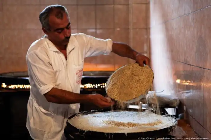Пробуя эту халву еще в Баку, я абсолютно себе не представлял, как формируется такой вкус, мягкий и хрустящий одновременно. Однако мне представилась потрясающая возможность увидеть святая святых в Шеки – цех-мастерскую по производству халвы.