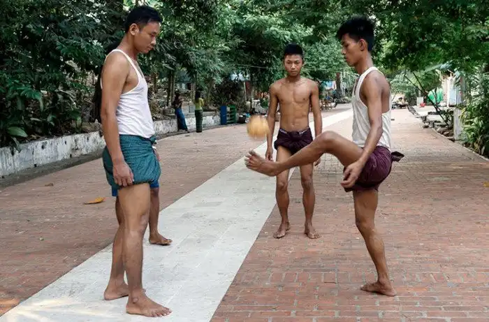 Чинлон — традиционная бирманская игра, в которую играют все без исключения: от детворы на улицах до монахов в монастырях. Суть заключается в том, чтобы как можно дольше удержать мяч в воздухе группой человек.