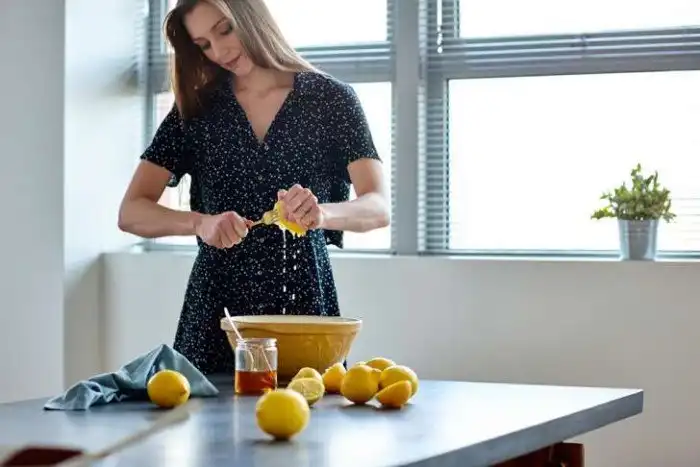 Подогрейте лимон в течение 10 секунд, затем дайте остыть пару секунд, разрежьте пополам и выжмите. Вы получите больше сока. Этот способ работает также и с более крупными фруктами, но нужно выставить таймер на чуть большее время.