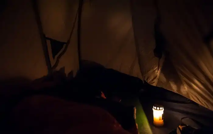 Несмотря на то, что есть налобные фонарики, захватите с собой свечки. Если аккуратно зажечь ее вечером и оставить в палатке на ночь, она даст немного дополнительного тепла.