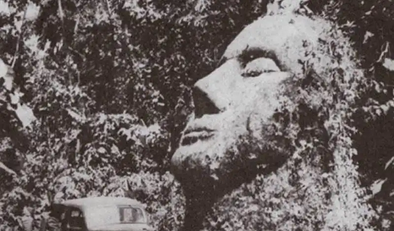 Эта гигантская каменная голова, которая была найдена доктором Оскаром Падилья в 1950 году, была почти забыта историей. Исследователь считал, что голова принадлежит древней культуре ольмеков, процветавшей в 1400 и 400 г. до н.э. К сожалению, Падилья сумел принести лишь фотографию находки: вернувшись на место с новой экспедицией, археолог обнаружил лишь разрушенные останки артефакта.