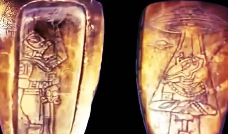 Мексиканское правительство опубликовало, сравнительно недавно, информацию о шокирующей находке в одной из пирамид. Изображения, обнаруженные учеными, показывают летающие тарелки, инопланетян и контакт жрецов с внеземным разумом. Естественно, все это может быть лишь гигантской мистификацией, однако, первоначальная датировка рисунков говорит об обратном.
